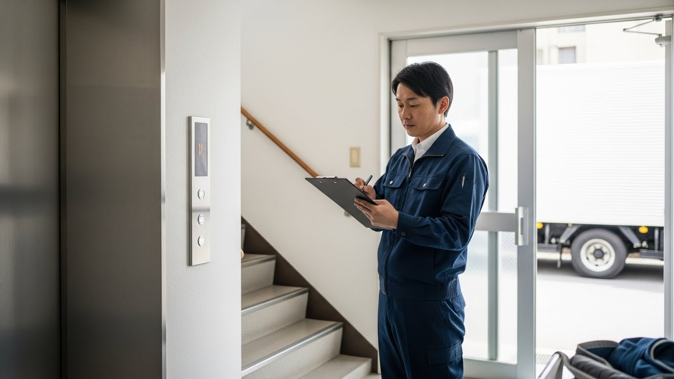 エレベーターの有無、階段作業の階数、トラックの駐車位置などは、作業時間と人員数に直結します。